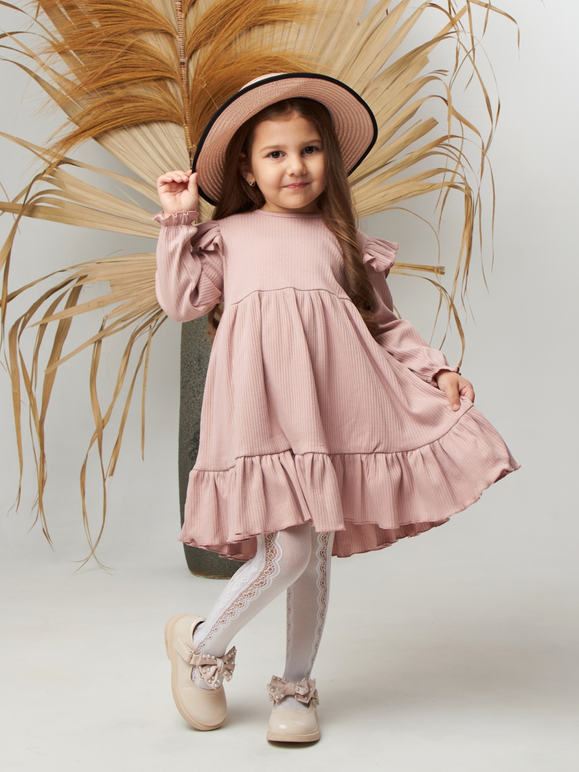 332. Платье детское из лапши, хлопок 100%, пудра, р. 98,104,110,116